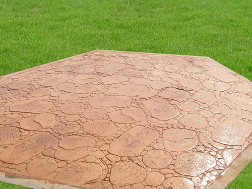 将规定之模具造型于混凝土面层上排放整齐并放样,再进行压印工作。